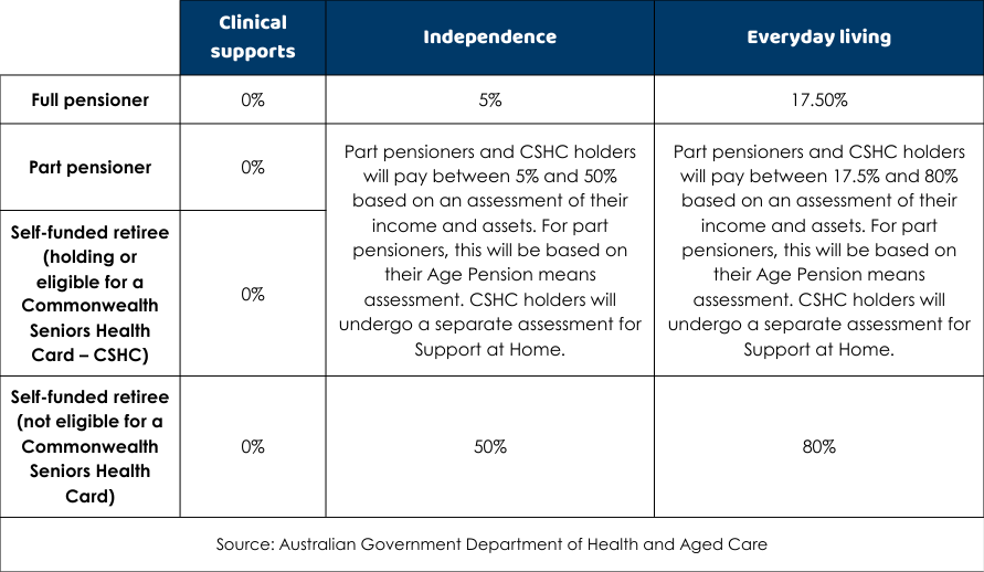 Support at Home participants pay contributions towards their services, based on an assessment of their income and assets from Services Australia